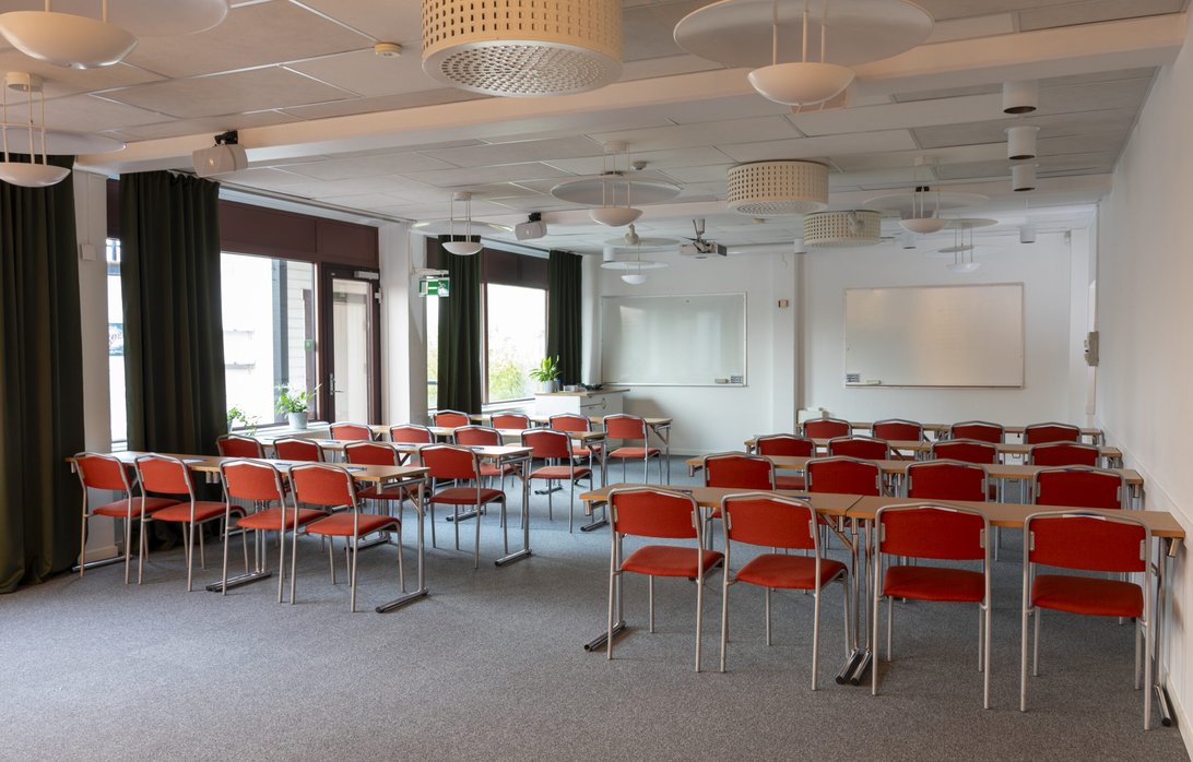 I konferenrummet Kramm konfererar ni i vår största lokal, en lokal utrustad med trippla whiteboard-tavlor och med möjlighet att kombinera er sittning och dela upp lokalen i en del för skolsittning och en del för grupperarbete.